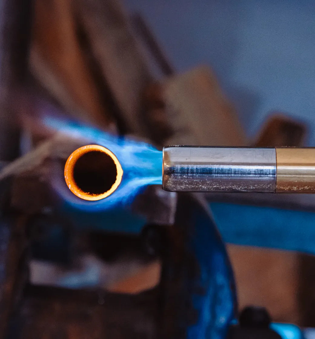 Brazing torches must be used responsibly to avoid fire or injury. Always light the torch from underneath or the side to prevent flare-ups and maintain a safe distance from combustible materials. Ensure the gas supply is turned off at the cylinder when the torch is not in use. A tidy, clutter-free workspace reduces risk — keep tools organised and remove flammable debris. Protective gloves and eyewear should be worn at all times, and eating, drinking, or smoking should be avoided during brazing operations.